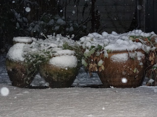 We woke up to snow this morning! It was still dark at 0830 when I took these first pictures: